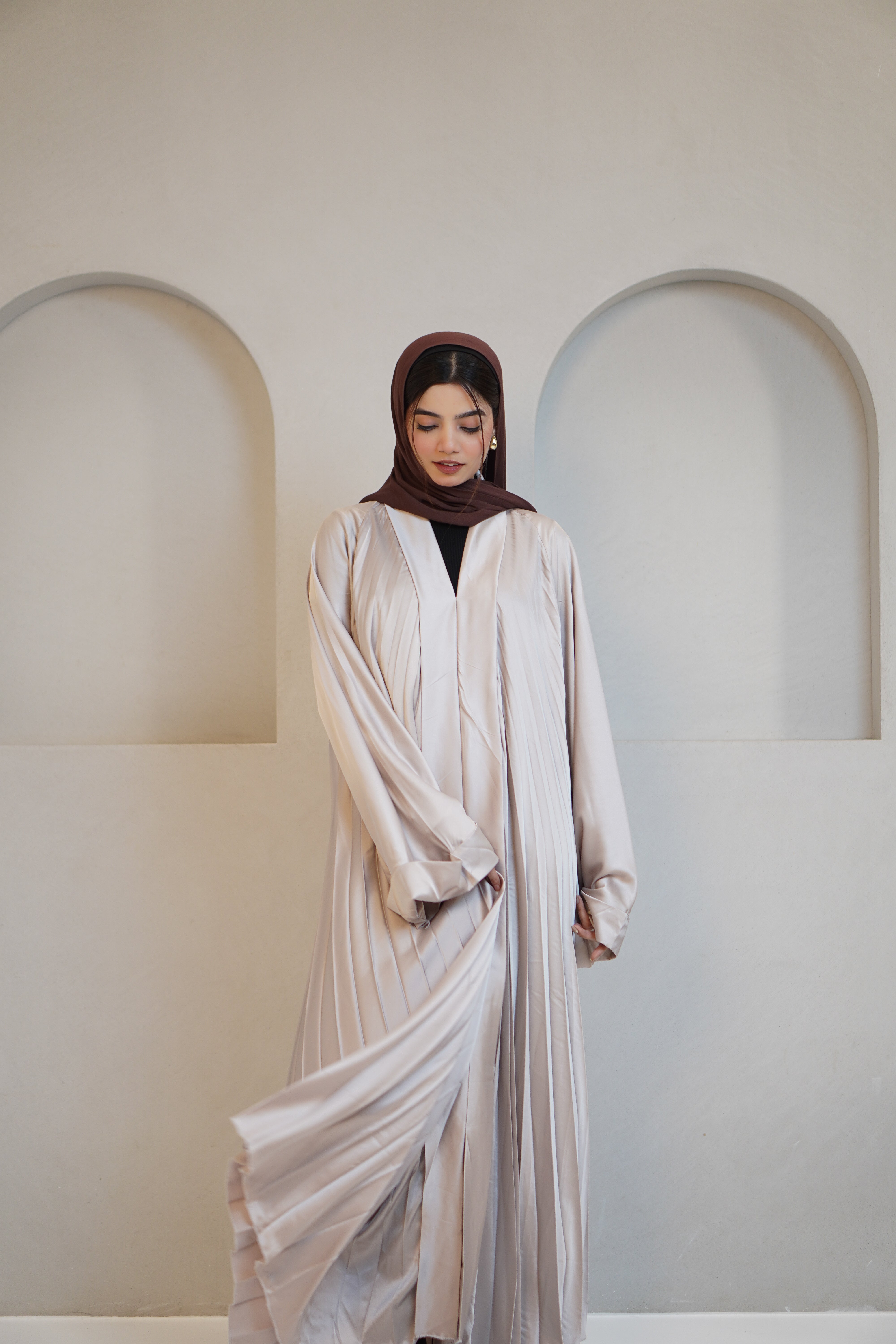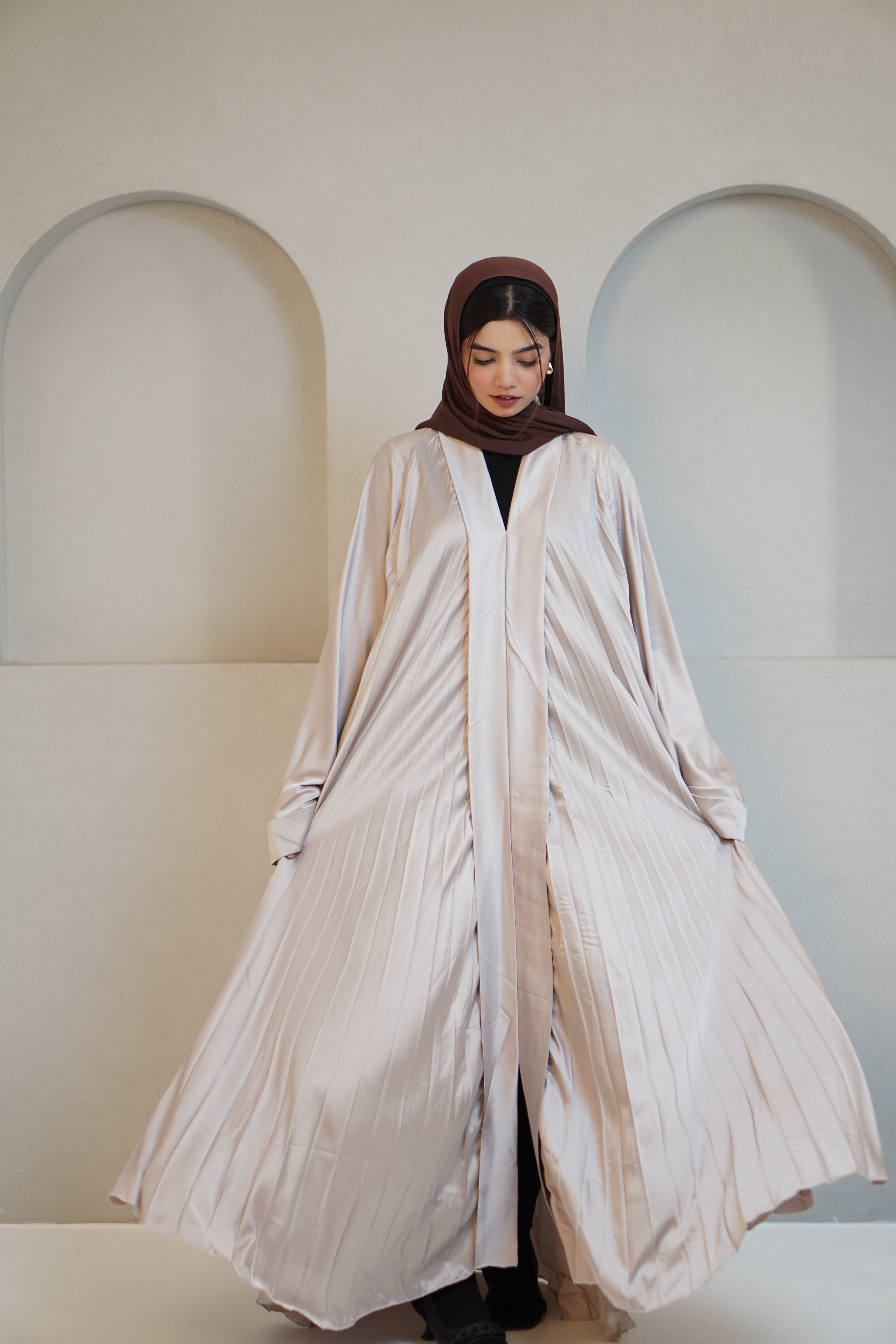 PLEATED ABAYAH - IVORY