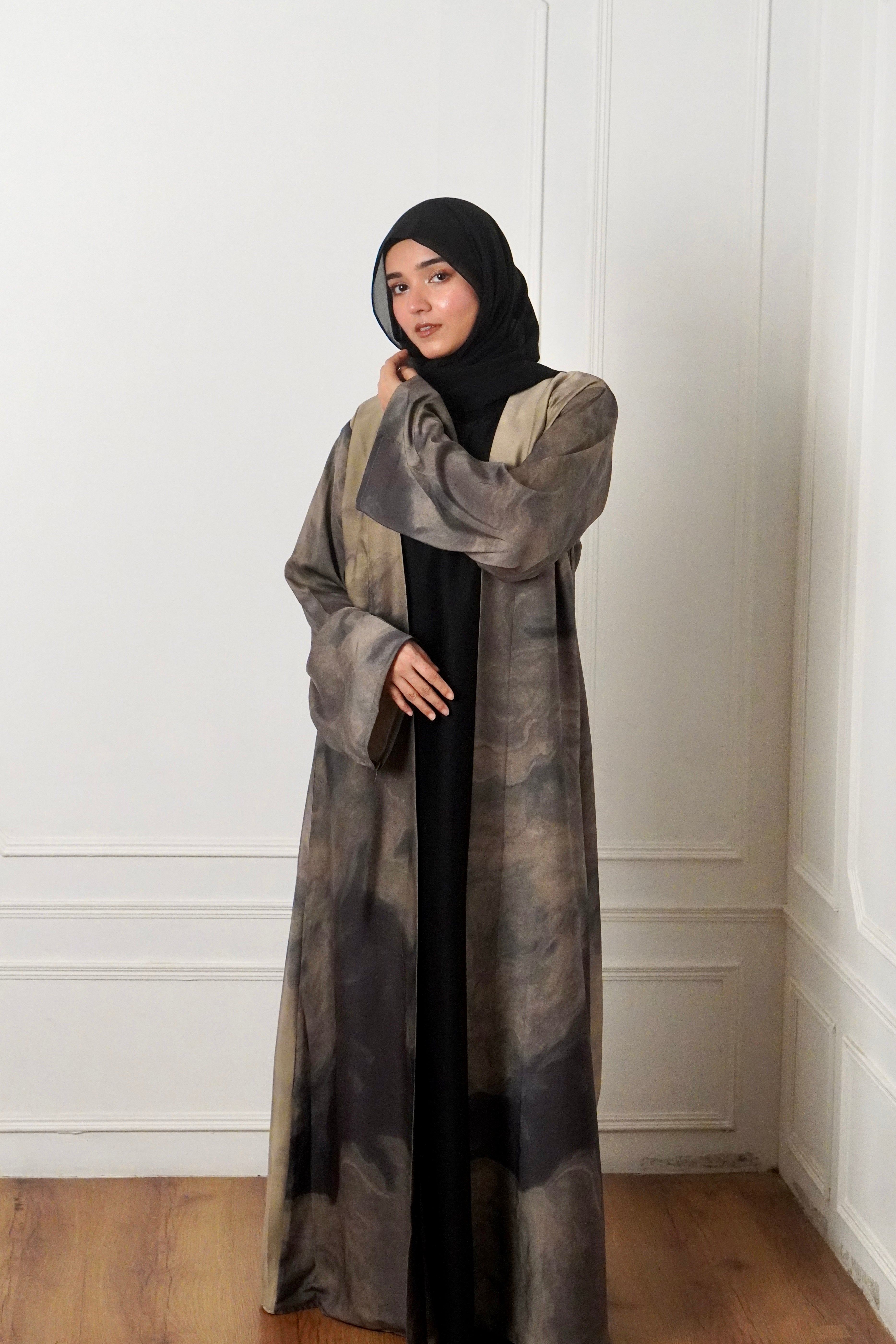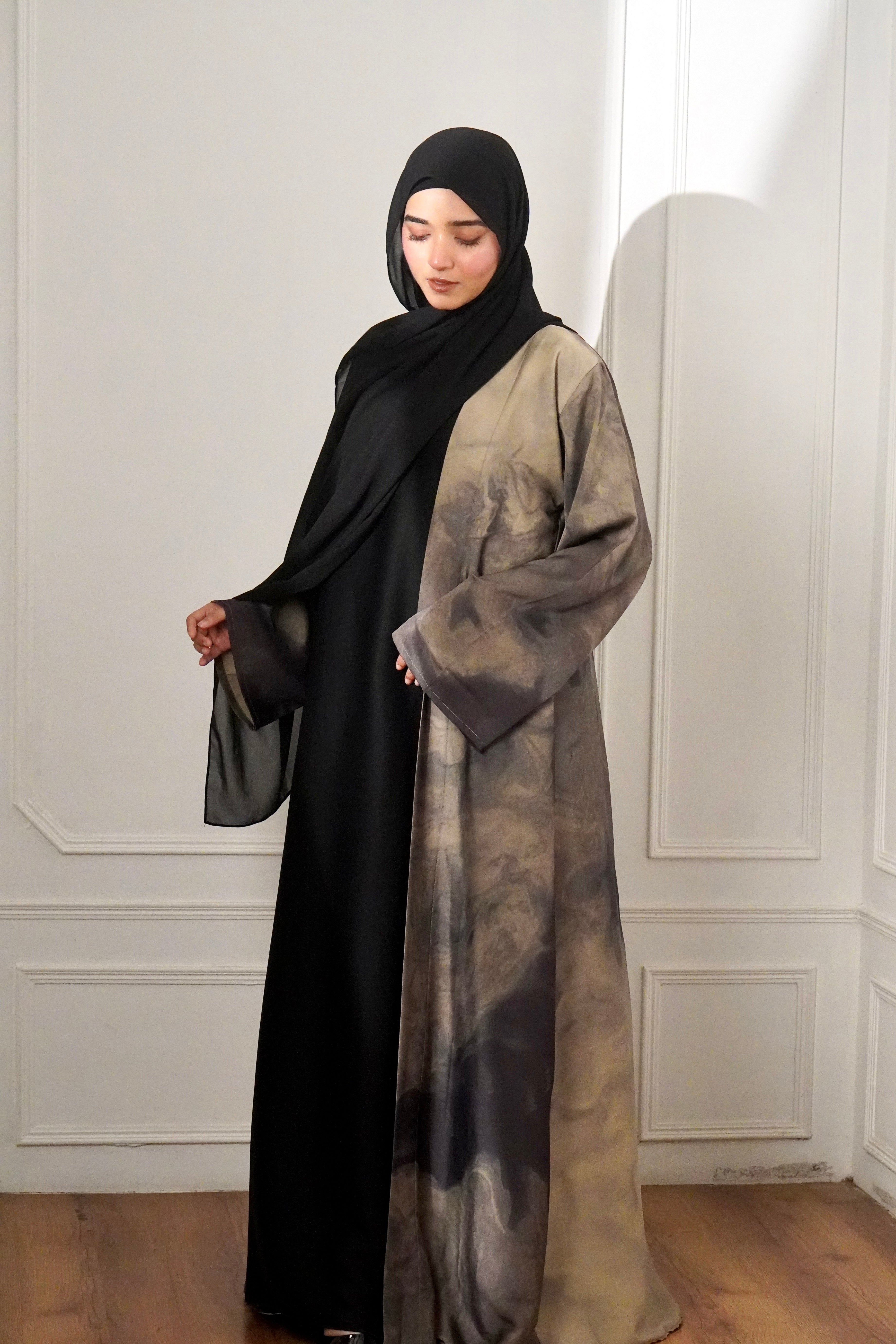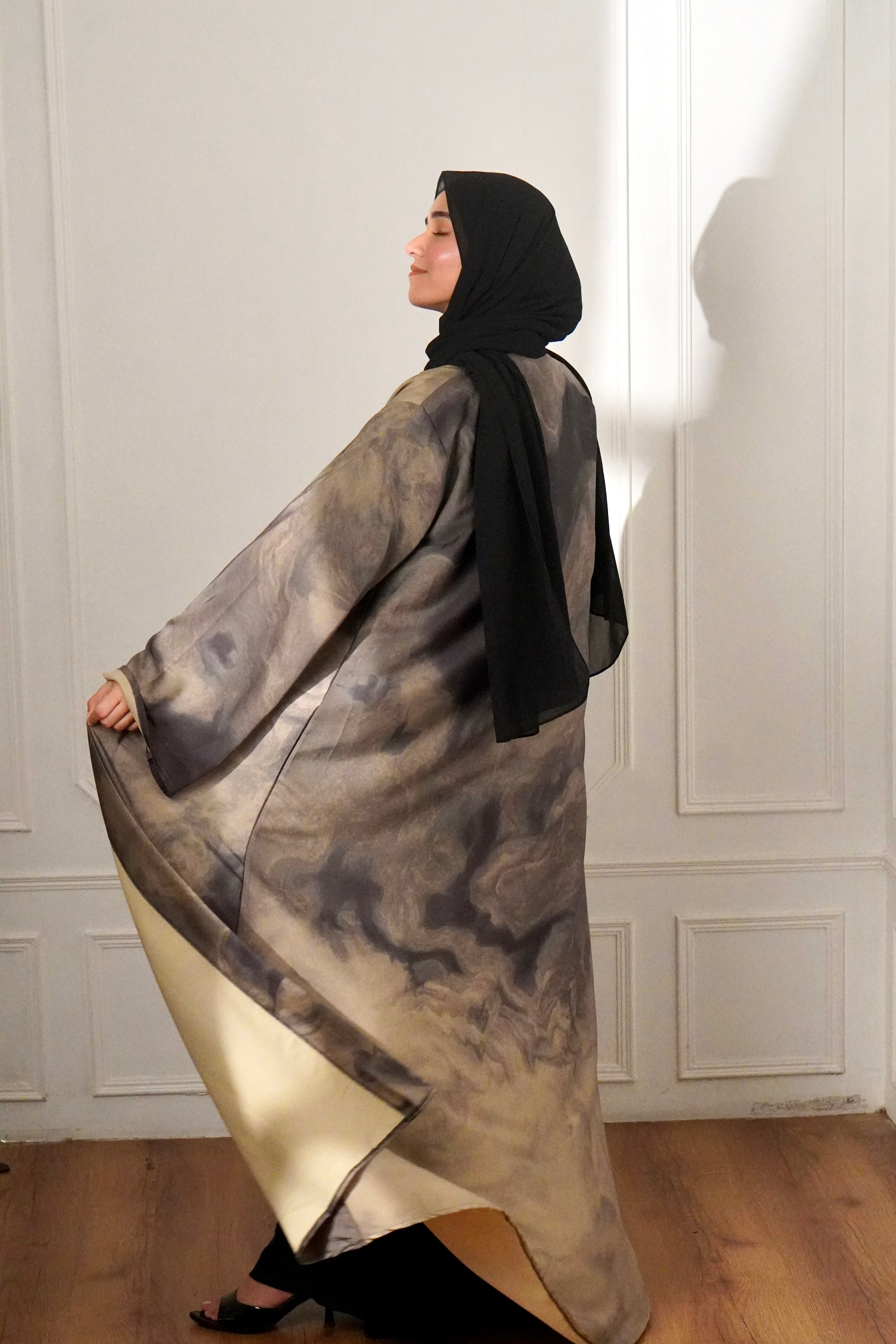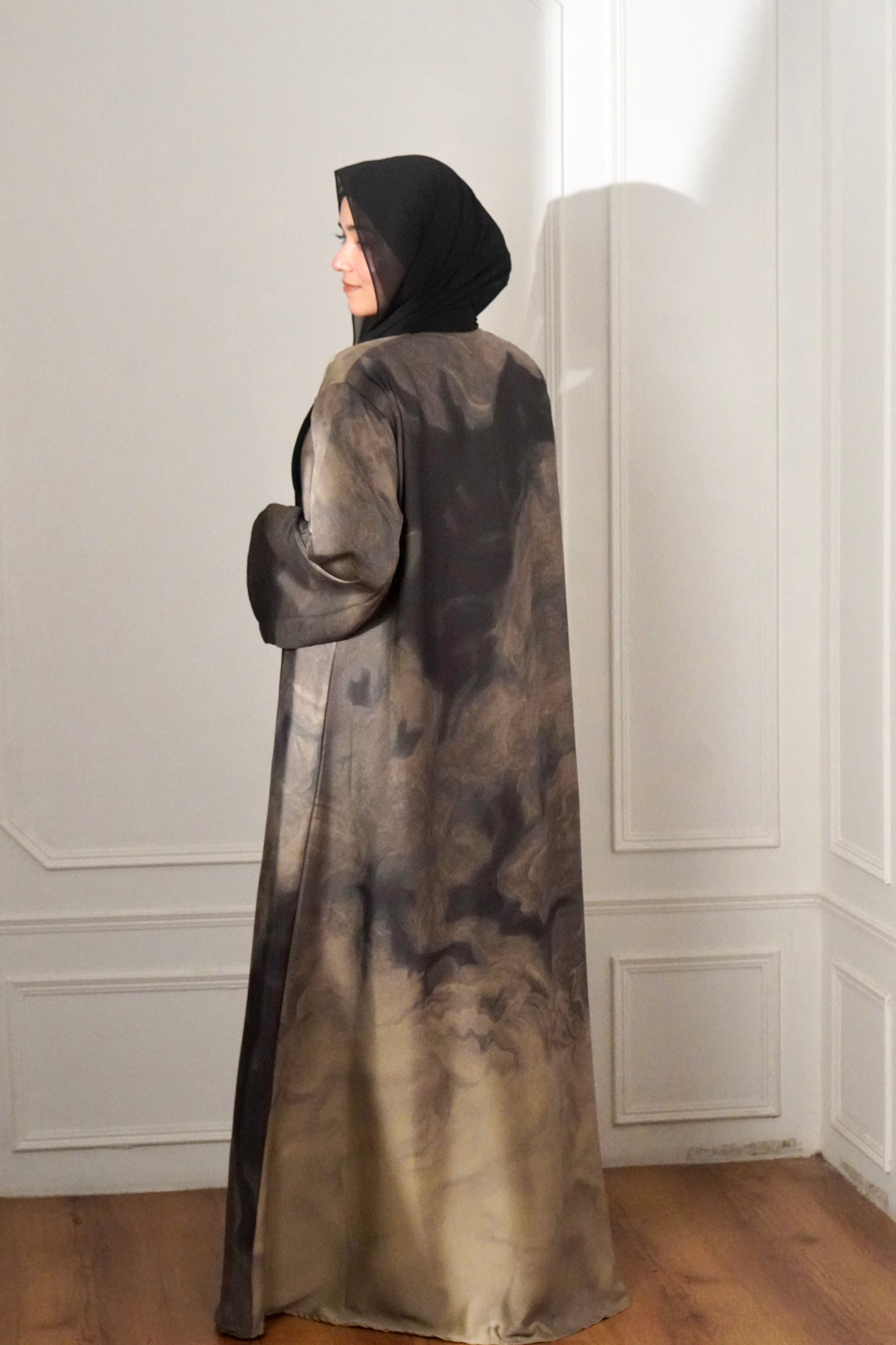 MARBLE PRINT ABAYAH - IVORY MIST