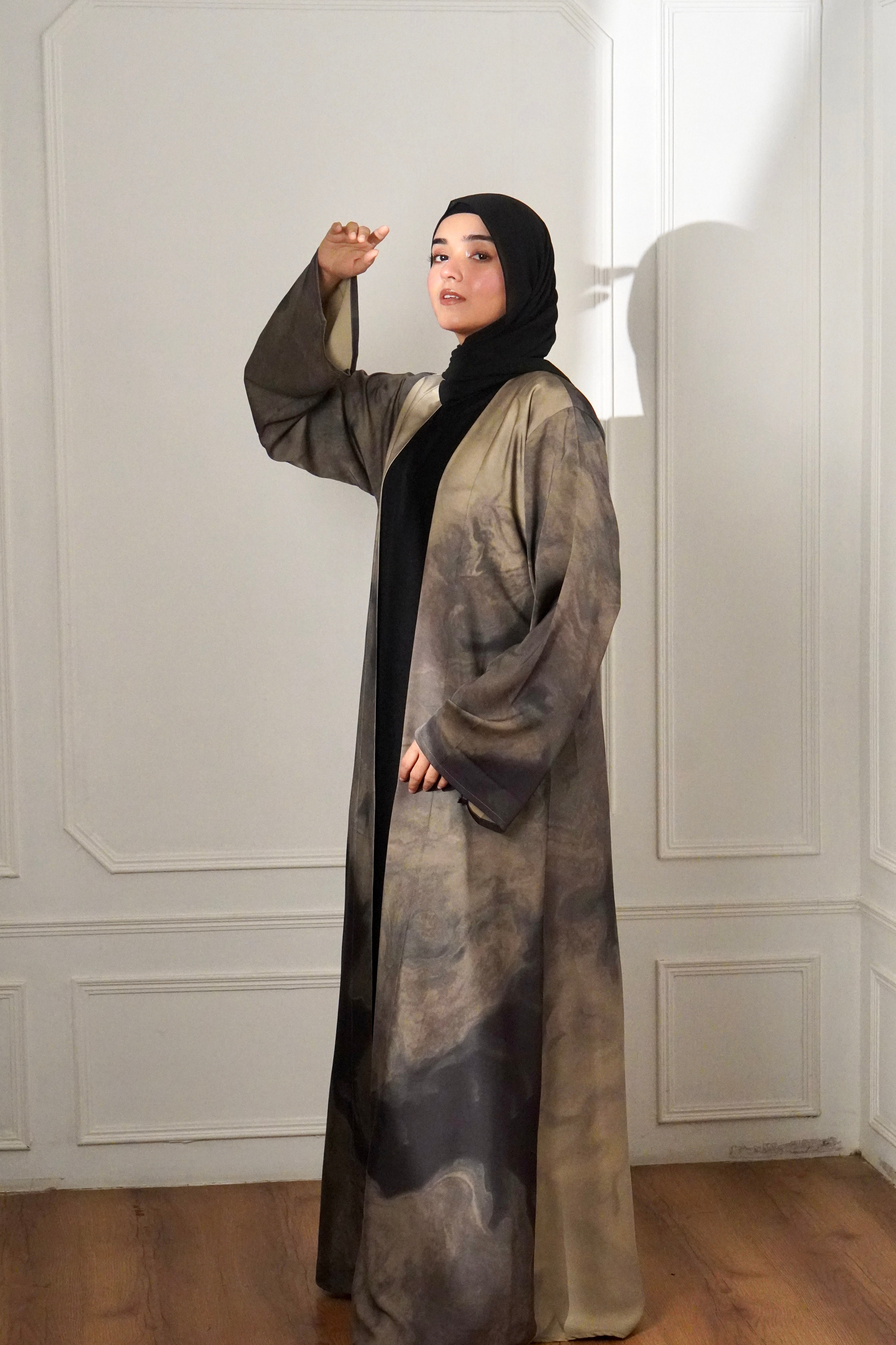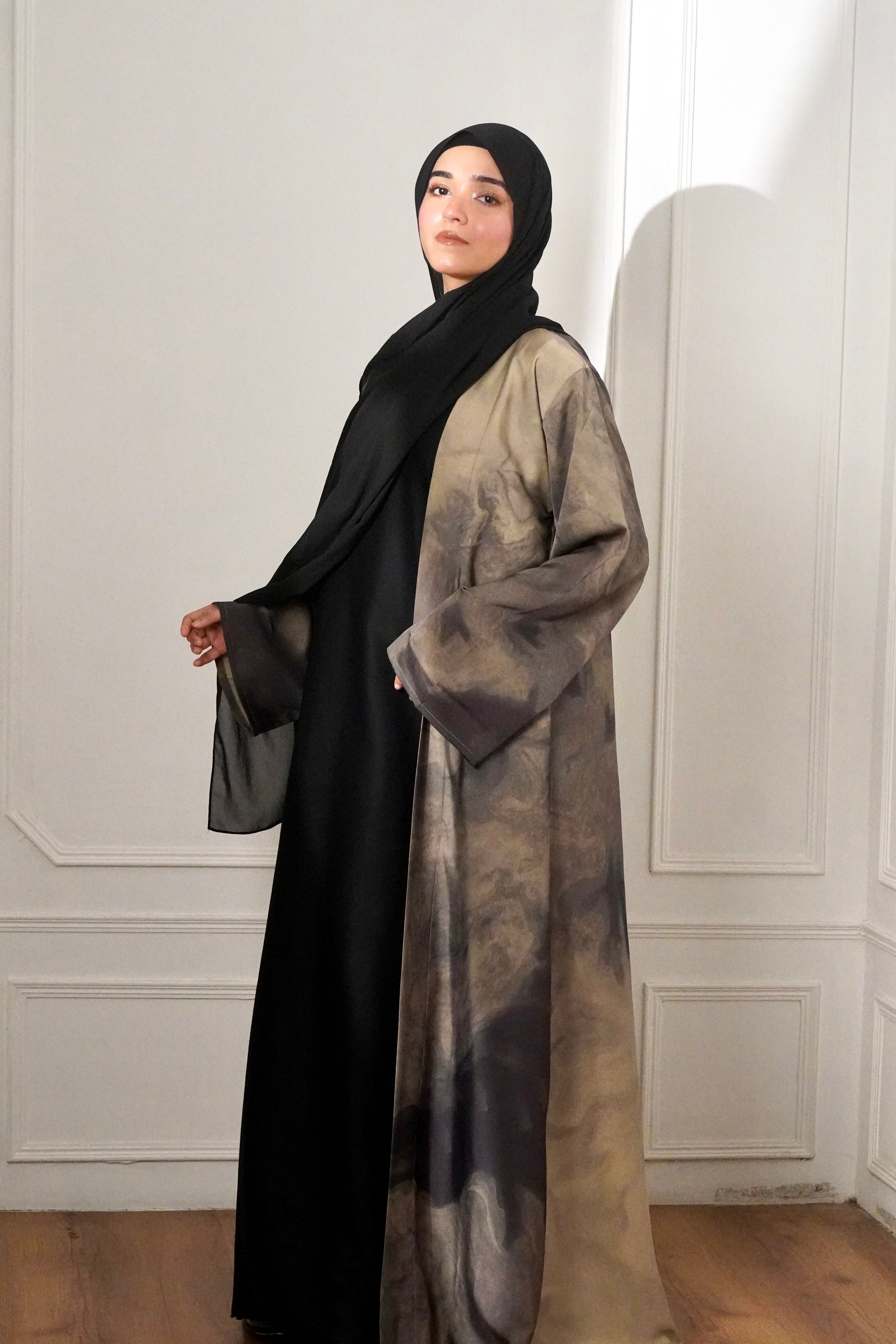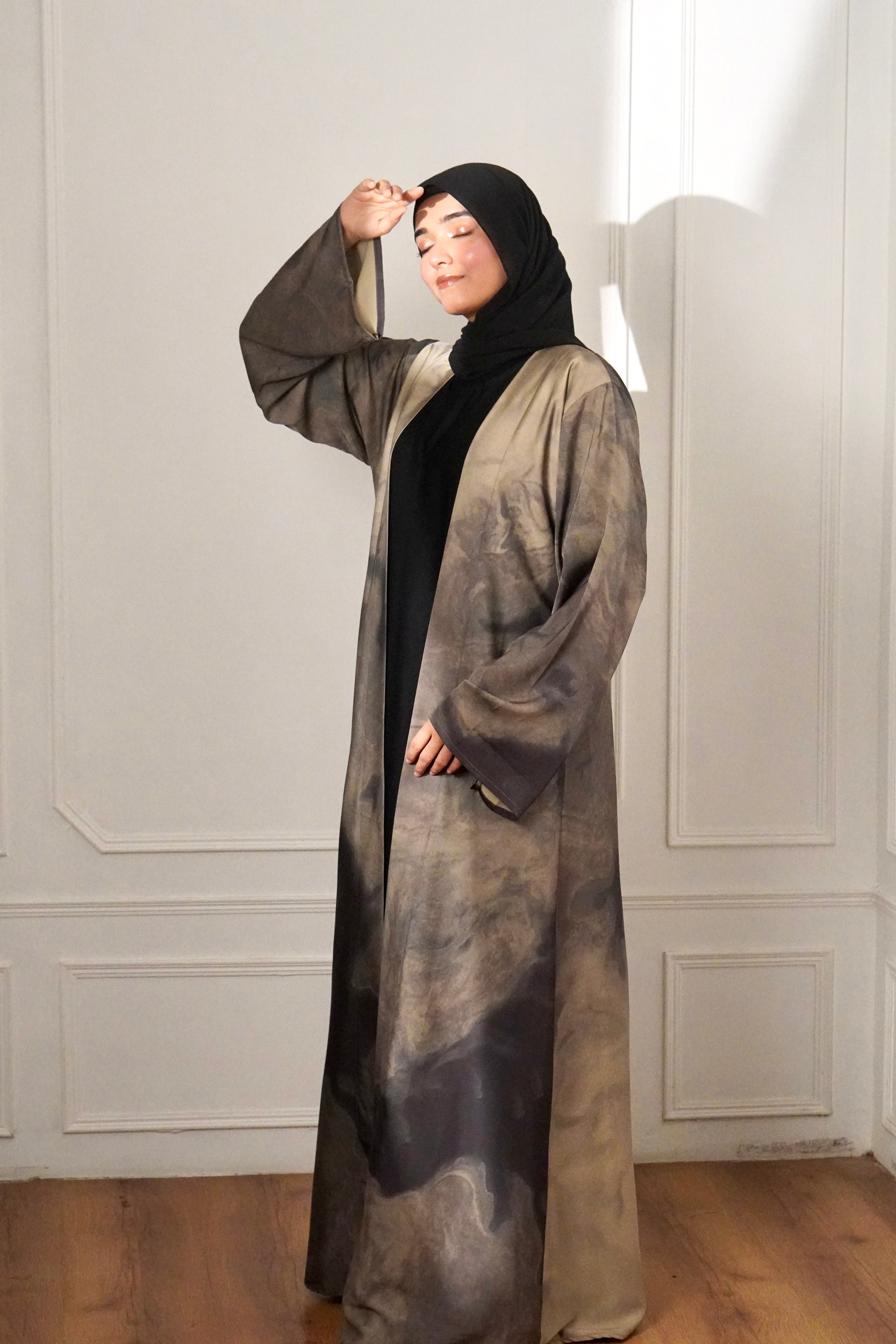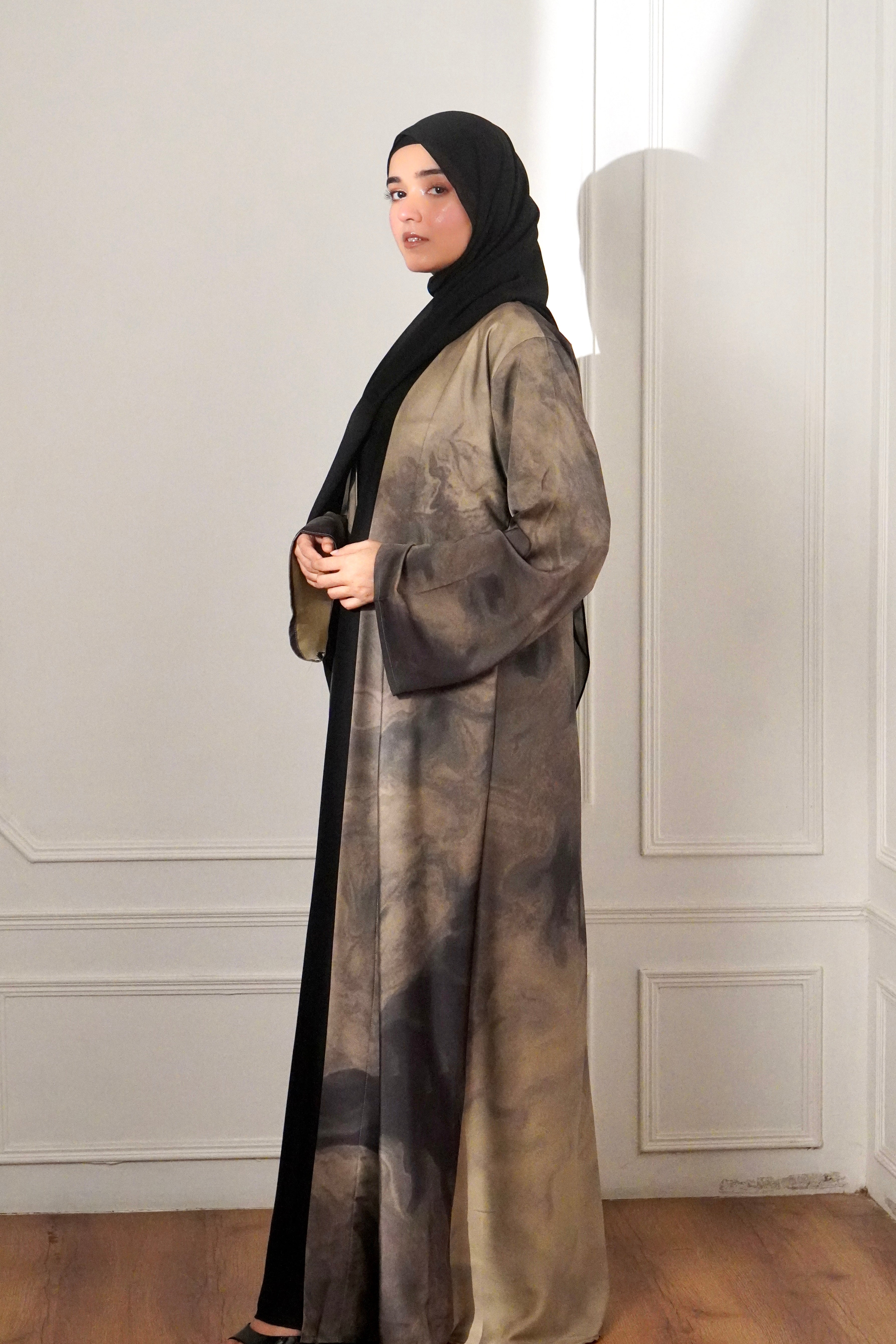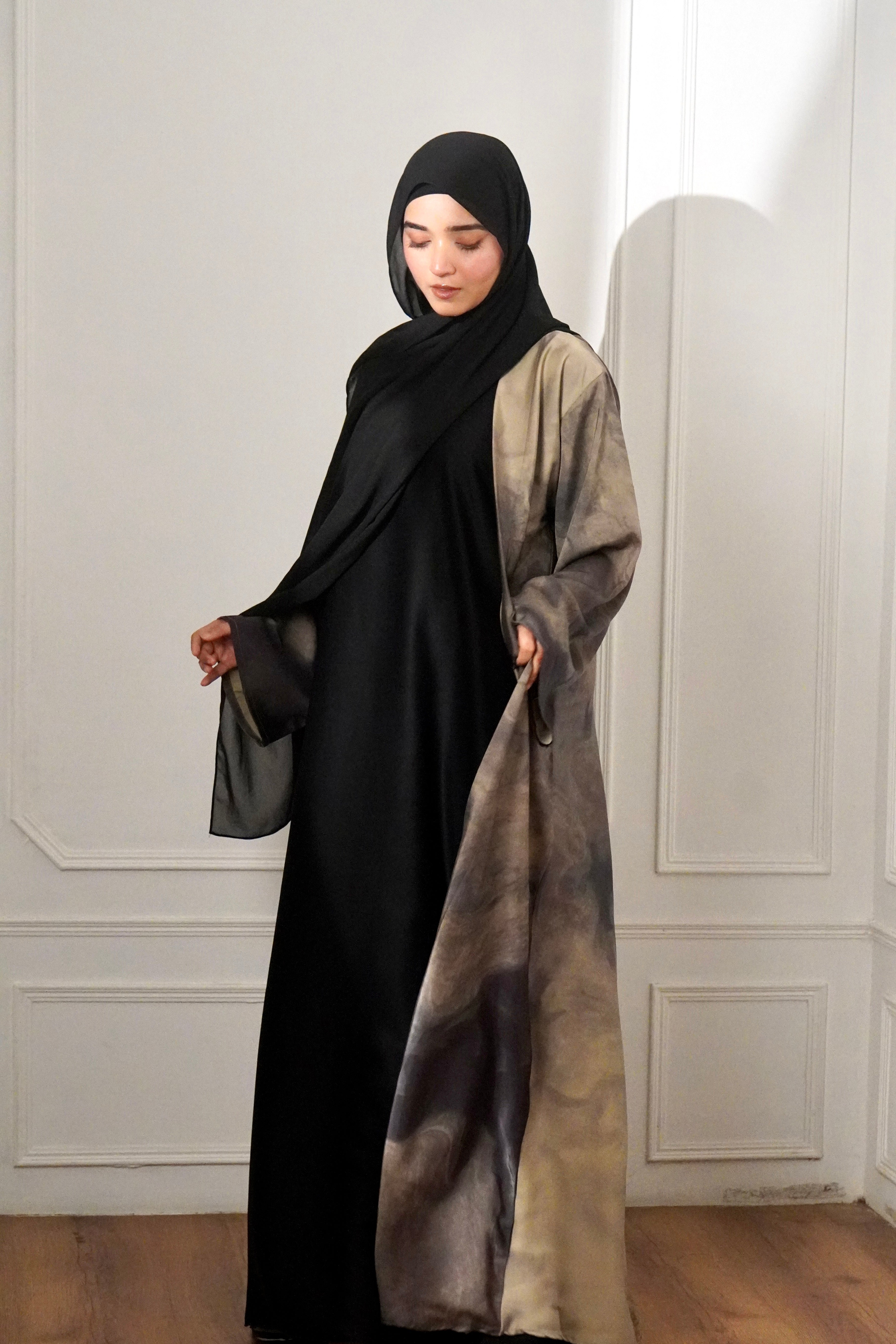 MARBLE PRINT ABAYAH - IVORY MIST
