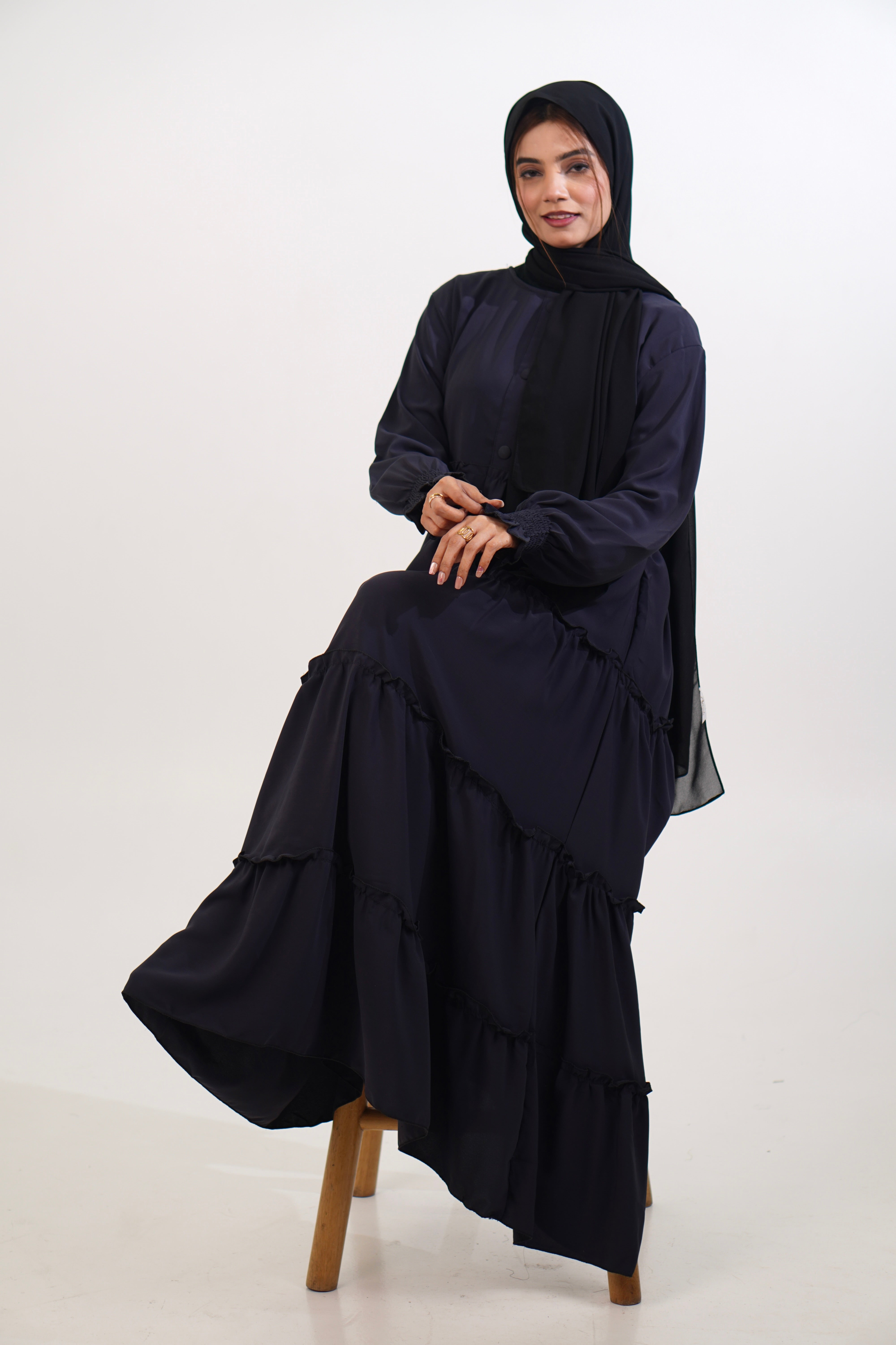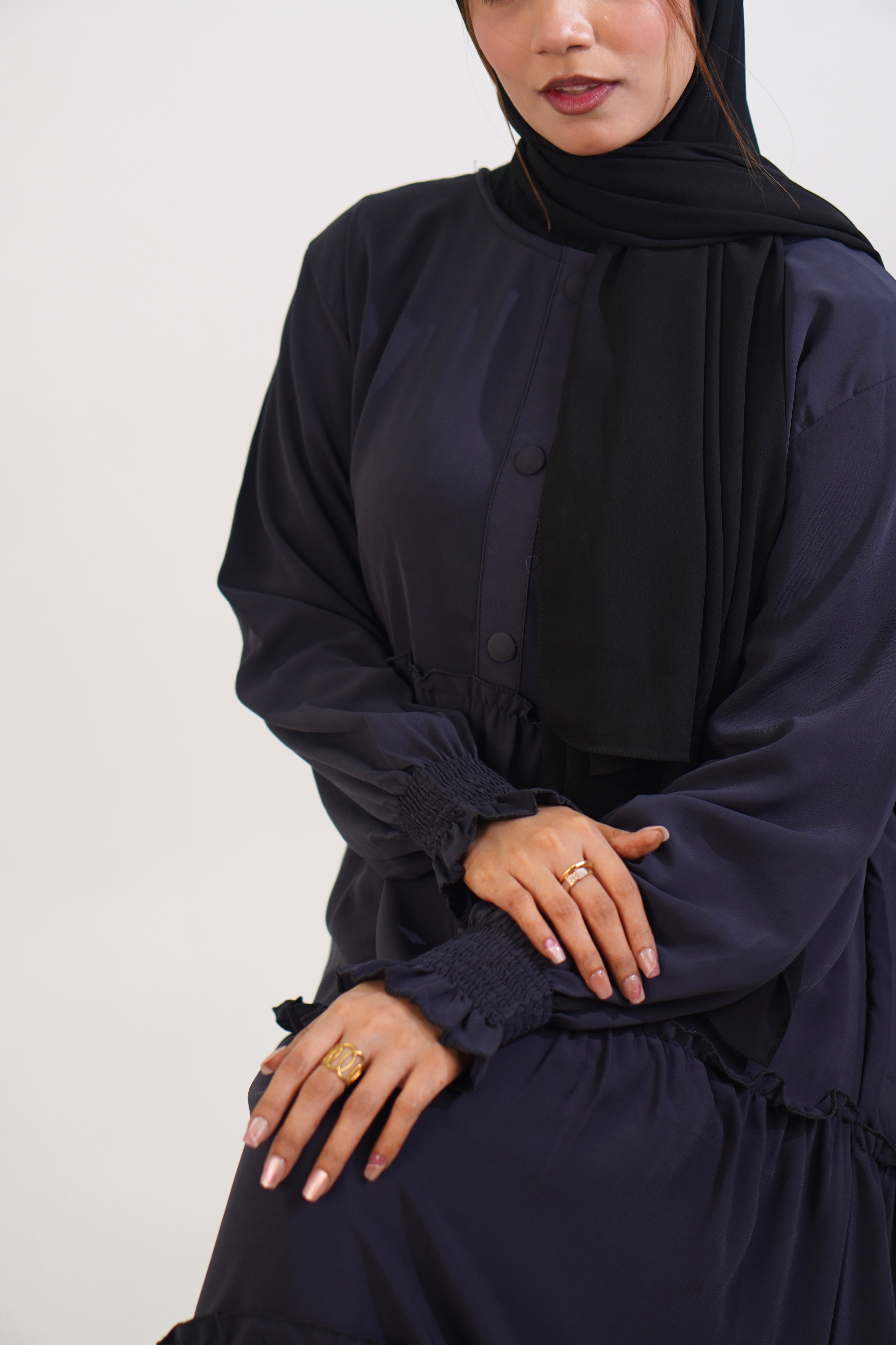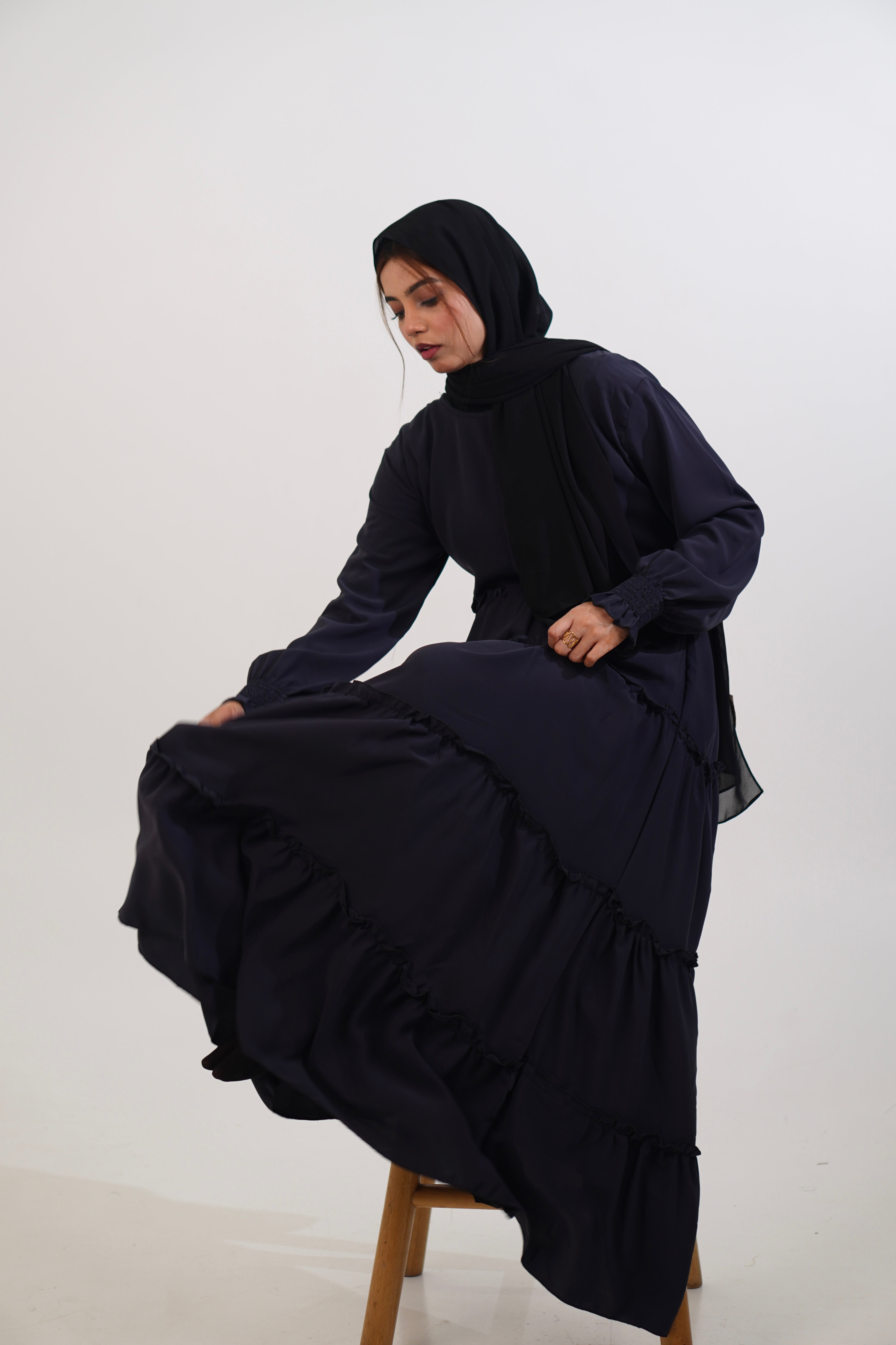 Feriha Ruffled Dress (Matte) - NAVY BLUE