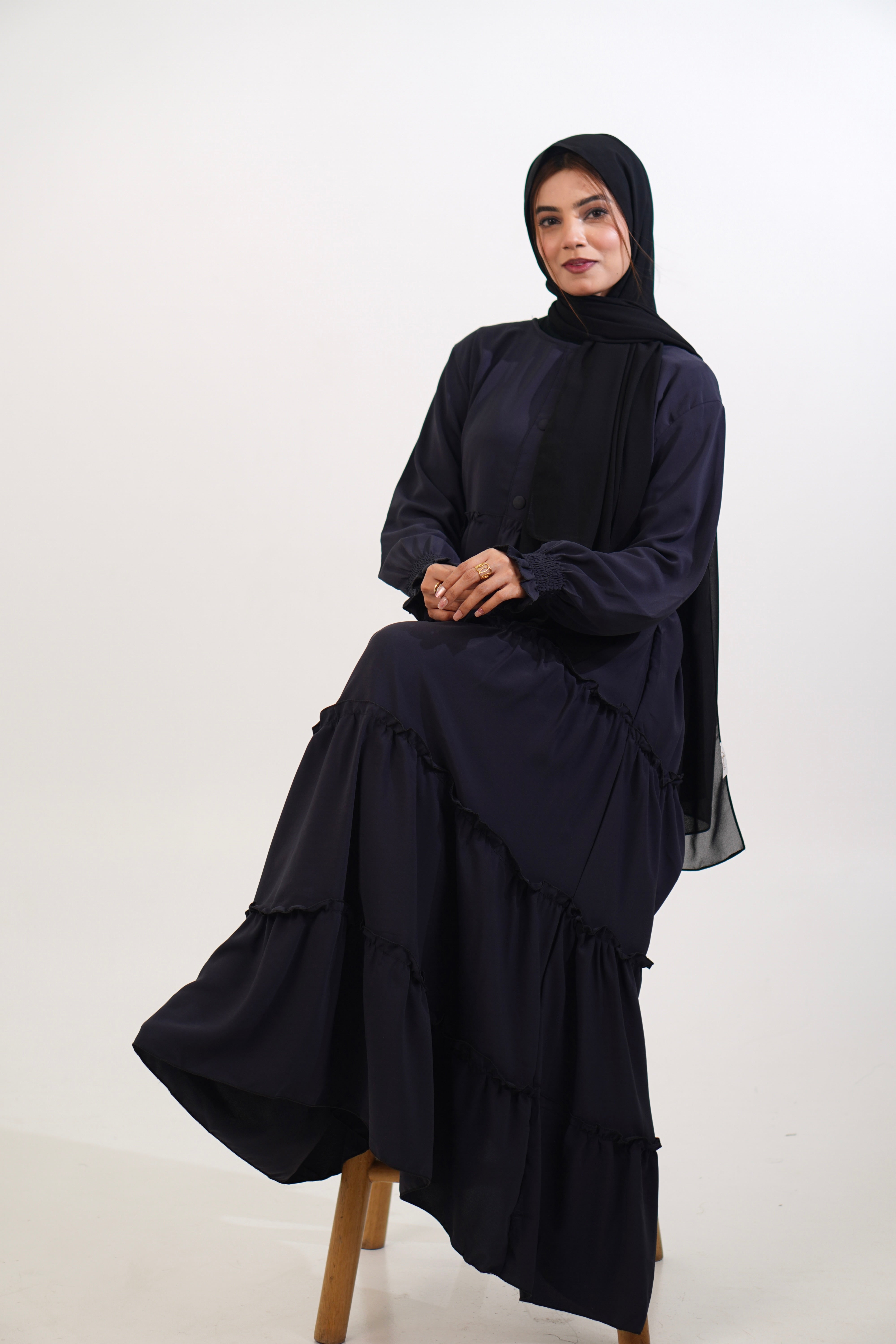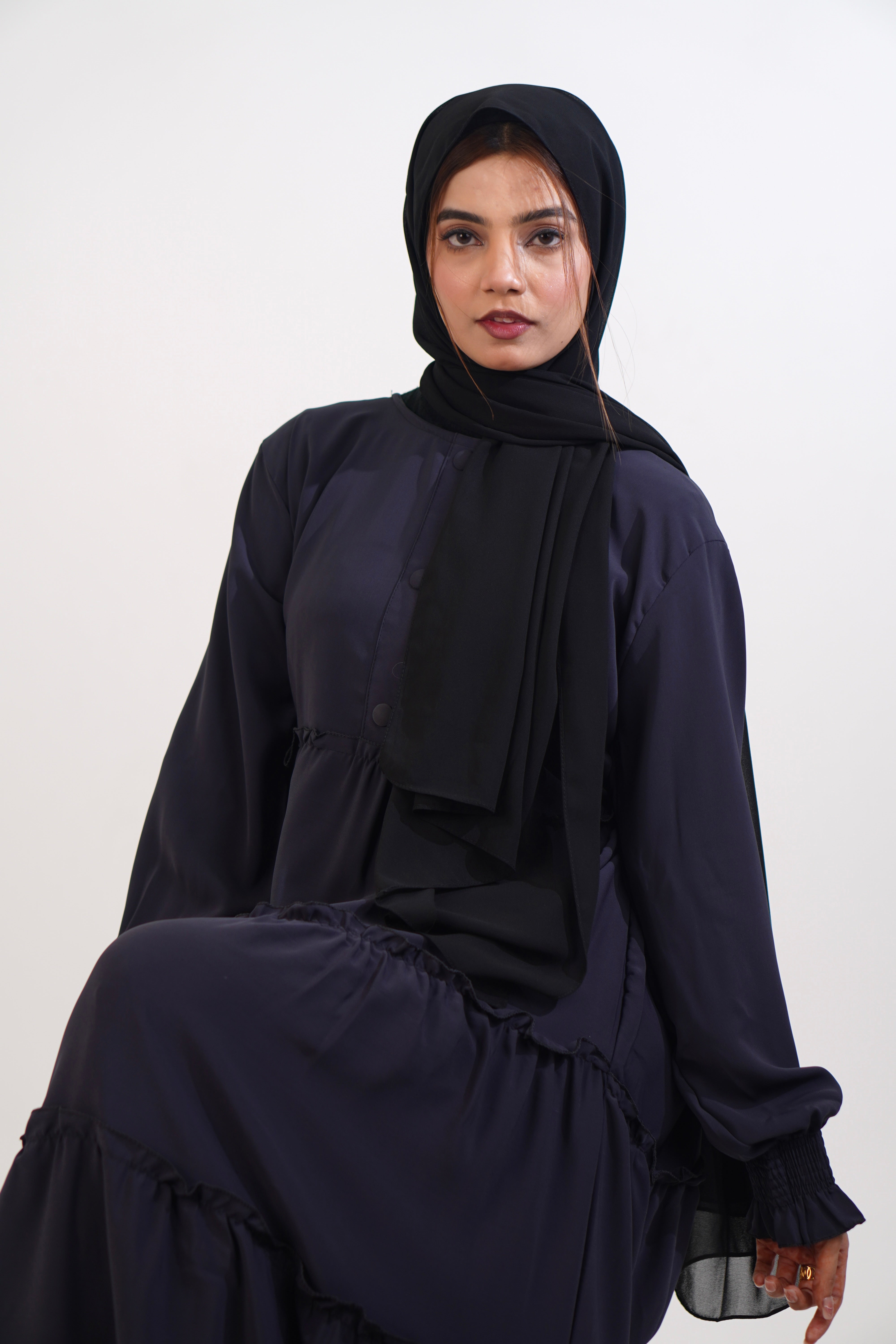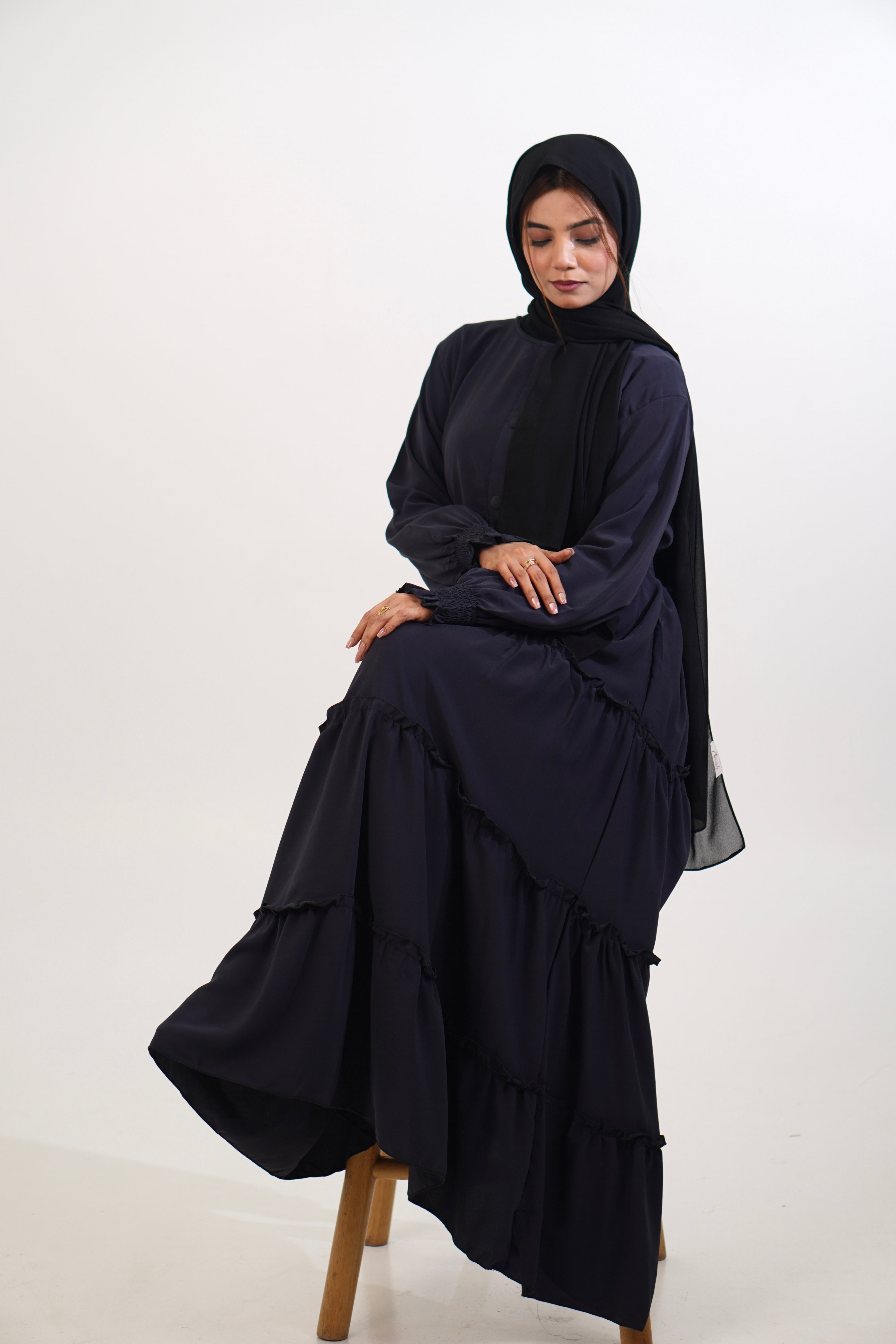Feriha Ruffled Dress (Matte) - NAVY BLUE